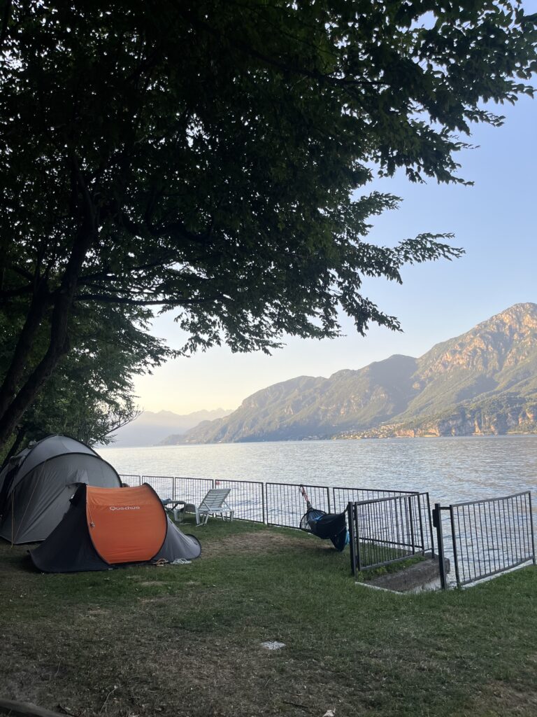 Puis nous sommes allés en bus dans notre camping, le camping & Bar La Formace que je recommande. Il se trouve dans la ville d’Onno, petit village entre Lecco et Bellagio sur la rive sud-est du lac. Un arrêt de bus se trouvait directement à l’entrée du camping et on pouvait prendre le bateau pour aller dans d’autres endroits à Onno à environ 15 minutes à pied du camping.La camping donné directement sur la Lac et il y avait un bar/retaurant avec des prix accessible. On pouvait aussi louer des kayak.